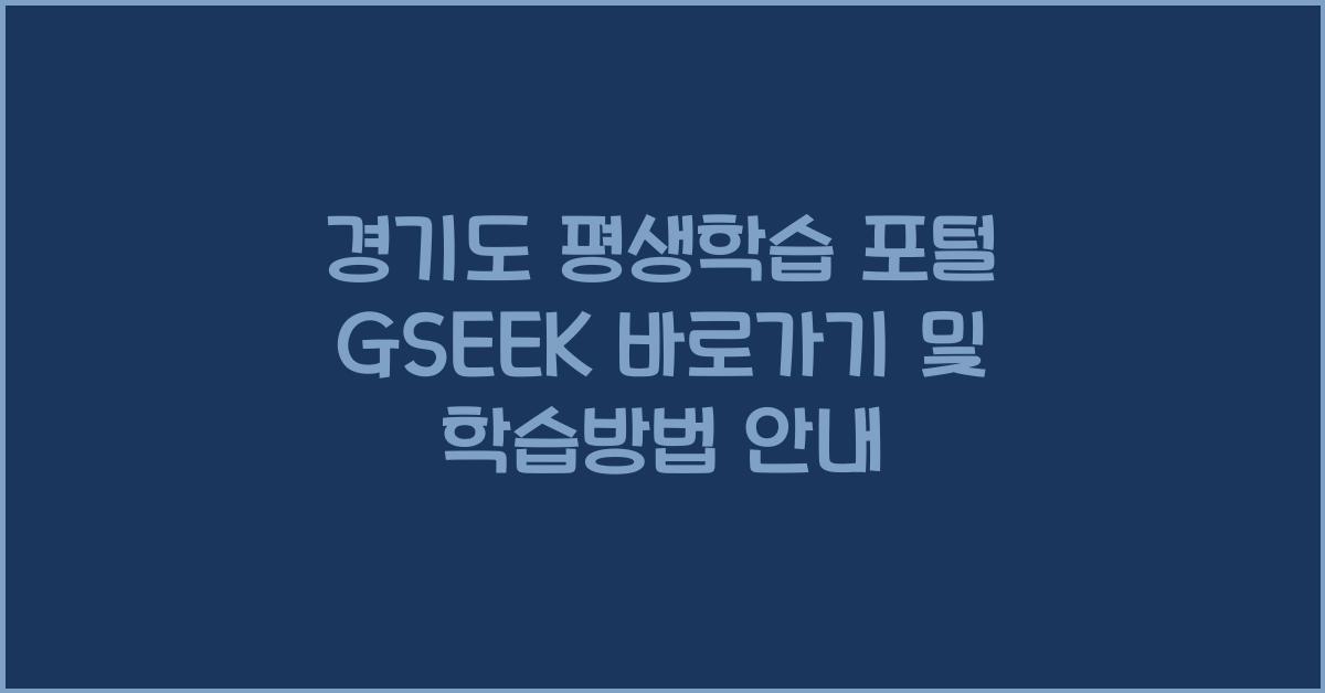 경기도 평생학습 포털 GSEEK 바로가기와 그 의미경기도 평생학습 포털 GSEEK은 경기도민들이 다양한 학습자원을 손쉽게 찾아보고, 필요한 지식과 정보를 얻을 수 있는 플랫폼입니다. GSEEK 바로가기 링크를 통해 여러분은 손쉽게 접근할 수 있으며, 그곳에서 수많은 온라인 강의와 자료를 접할 수 있습니다. 이곳은 단순히 공부할 수 있는 공간이 아니라, 성장과 발전의 과정을 가능하게 하는 든든한 지원군입니다. 인생의 어느 시점에서도 학습은 멈추지 않습니다. 그렇기에 GSEEK은 모든 세대에 걸쳐 마스터할 수 있는 다양한 강의를 제공하여, 여러분이 원하는 모든 것을 배울 수 있게 도와줍니다. GSEEK 바로가기를 통해 학습을 시작해보세요!경기도 평생학습 포털 GSEEK 바로가기, 학습방법 안내 더 알아보기G..